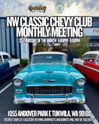 NW Classic Chevy Club will be in the house every 3rd Thursday of the month for their monthly members meeting! We’re excited to host their meetings and can’t wait to see what pulls up! Please note that our lounge will…