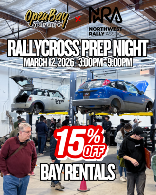 Rallycross Prep Night! Participating in the Northwest Rally Association Season Opener this Friday through Sunday and need to get your car ready? Join us this Thursday, March 12 from 3–9 PM for our Rallycross Prep Night! Season opener participants will receive…
