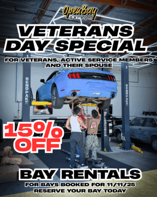 Read MoreVeterans Day Special! Veterans Day is next Tuesday, November 11th, and we’re posting our special early so all veterans, active service members, and their spouses can plan ahead and take advantage of it. As a thank you for your service, enjoy 15% off all bays booked for 11/11/25. Reserve your bay in advance through our…
