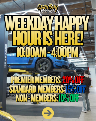 Introducing our weekday Happy Hour. For a limited time, book a bay Mon – Fri from 10AM – 4PM and get: